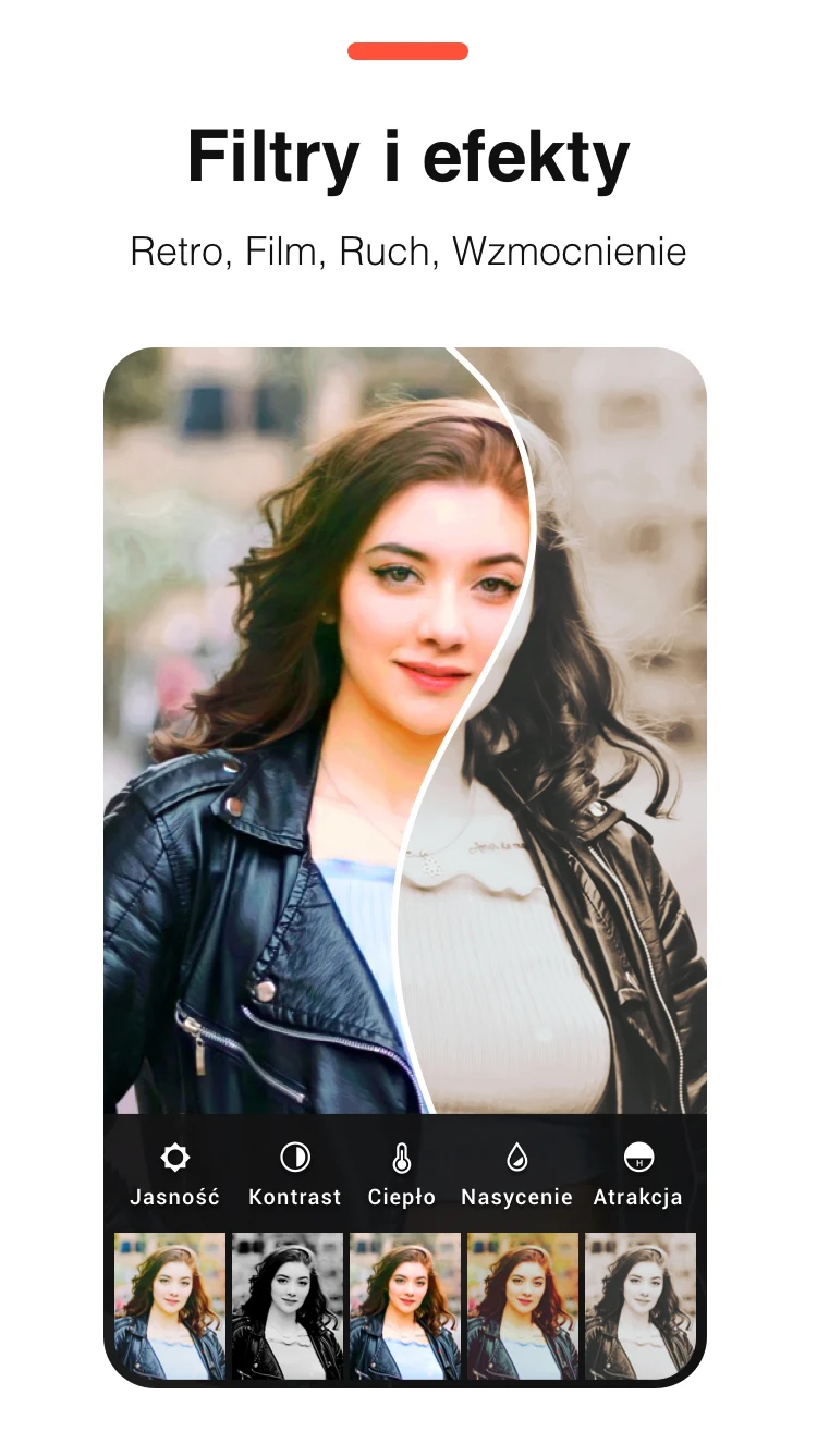 Użytkownicy mają dostęp do szerokiej biblioteki filtrów i efektów stylizacyjnych, które można dostosować pod względem intensywności. Dostępne są m.in.: