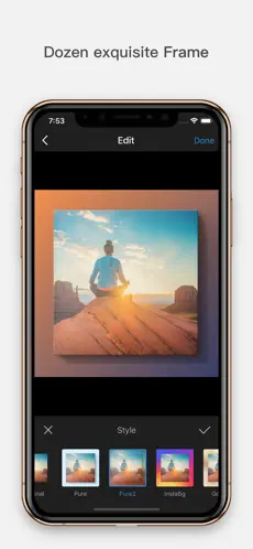 Aplikacja oferuje szeroką bibliotekę ramek: minimalistycznych, kolorowych, artystycznych i eleganckich. Możesz łatwo dopasować grubość i kolor ramki do stylu zdjęcia.