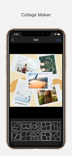 W InFrame znajdziesz wiele układów kolaży – od prostych po bardziej kreatywne. Wystarczy wybrać zdjęcia z galerii, a aplikacja automatycznie ułoży je w estetyczny projekt.