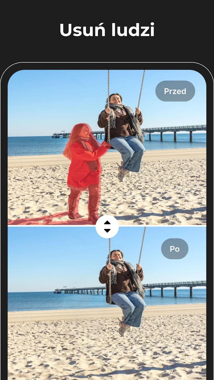 Po usunięciu obiektów aplikacja automatycznie wygładza krawędzie i dopasowuje kolory, co sprawia, że zdjęcie wygląda naturalnie i estetycznie.