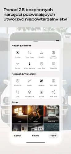 Ponad 30 narzędzi i filtrów – W tym krzywe, balans bieli, HDR, narzędzie do usuwania obiektów czy podwójna ekspozycja.