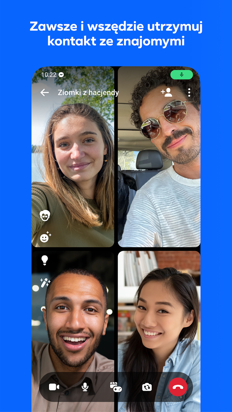 Dzięki aplikacji Messenger od Meta bez trudu wykonasz grupowe wideorozmowy, połączenia głosowe, wyślesz wiadomości tekstowe i wiele więcej, aby pozostać w kontakcie z rodziną i przyjaciółmi w każdej chwili i z dowolnego miejsca.
