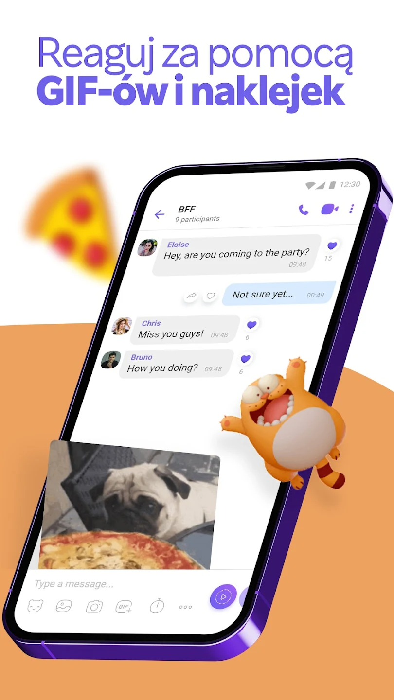 • Naklejki i GIF-y – wyraź emocje dzięki tysiącom darmowych naklejek i animacji.