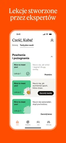 Lekcje są krótkie i skoncentrowane, co pozwala uczyć się nawet kilka minut dziennie.