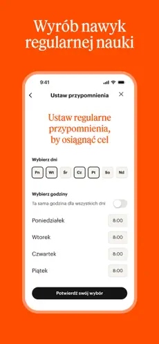 - Regularnie powtarzaj materiał dzięki systemowi przypomnień.
