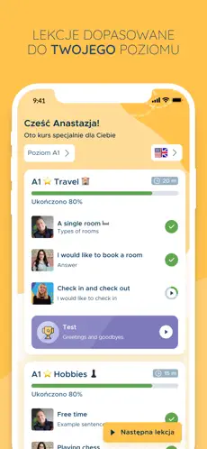 • Personalizacja – program nauki dopasowuje się do Twojego poziomu i celów językowych.