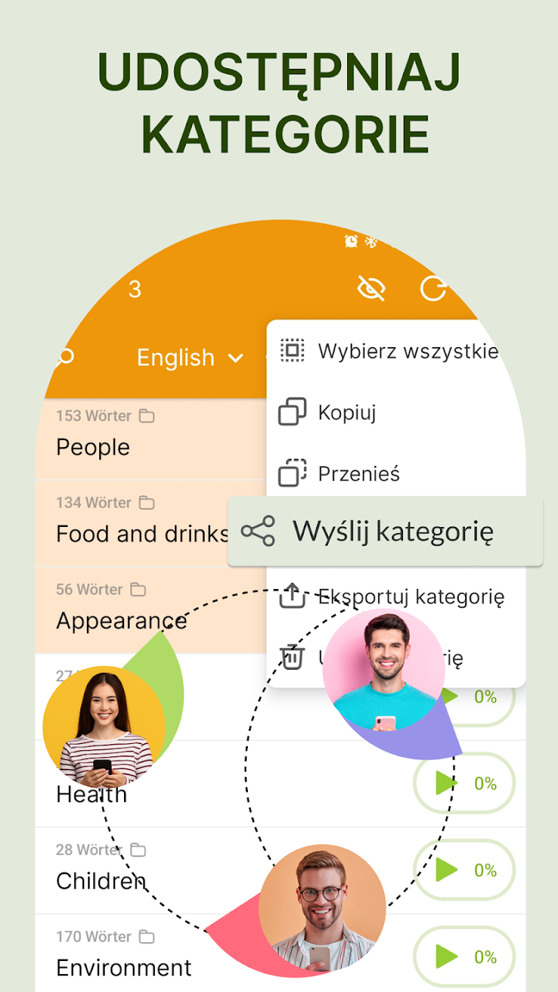 Użytkownicy mogą samodzielnie tworzyć zestawy fiszek dopasowane do swoich potrzeb – np. słownictwo biznesowe, podróżnicze czy szkolne.