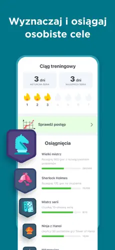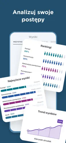 Aplikacja śledzi Twoje wyniki i przedstawia je w przejrzystych wykresach, dzięki czemu możesz monitorować rozwój w czasie.