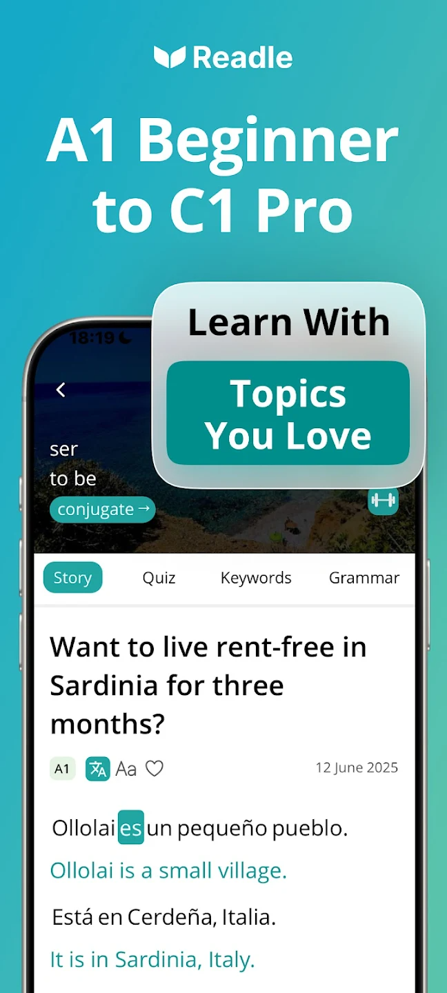 Learn Spanish – Daily Readle to praktyczna aplikacja do nauki języka hiszpańskiego, która stawia na codzienne czytanie i systematyczność. Dzięki krótkim tekstom, nauce słownictwa w kontekście i wygodnej formie mobilnej pomaga skutecznie rozwijać kompetencje językowe bez presji i nadmiaru teorii.