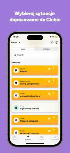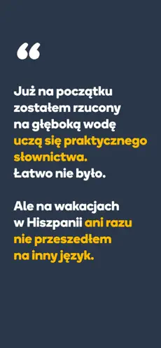 Wybierz język i poziom, a aplikacja dopasuje tempo i materiał do Twoich potrzeb.