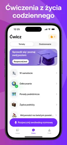 Aplikacja Praktika kładzie duży nacisk na praktyczne użycie języka. Dzięki funkcjom rozpoznawania mowy użytkownicy mogą: