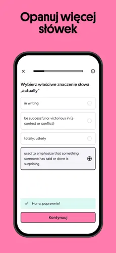 Dzięki aplikacji mobilnej i platformie internetowej użytkownik może uczyć się angielskiego z domu lub w podróży.