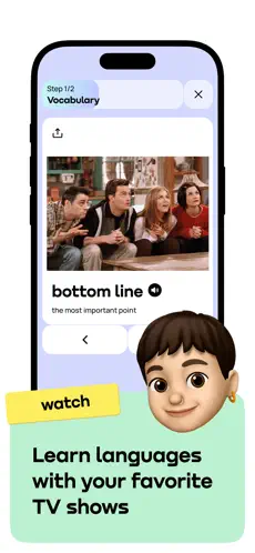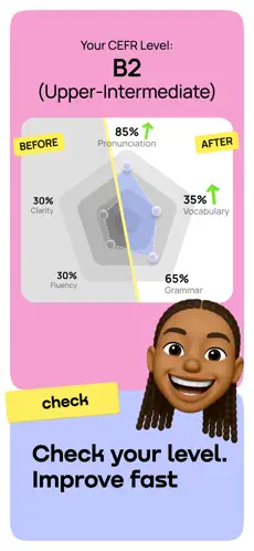 Aplikacja koncentruje się na realnym użyciu języka – codziennych zwrotach, dialogach oraz poprawnej gramatyce.