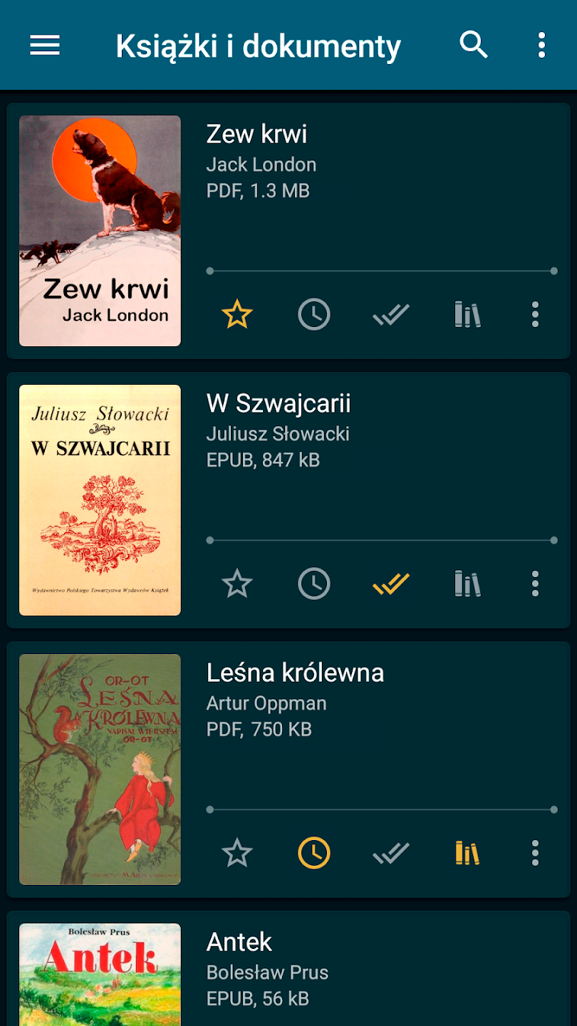 • Intuicyjny interfejs użytkownika – łatwe przeglądanie bibliotek, zakładki, podział na foldery, szybki dostęp do ostatnio otwieranych książek.