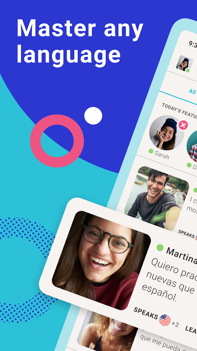 Aplikacja łączy ludzi o podobnych celach językowych, pozwalając im wzajemnie uczyć się swoich języków ojczystych.