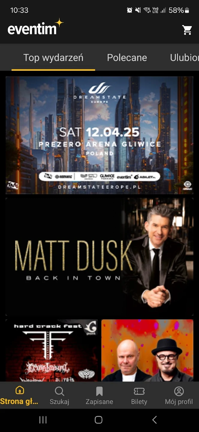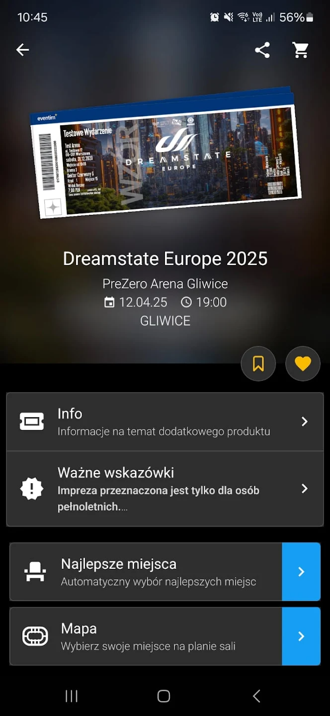EVENTIM PL – Mamy Twój bilet! to oficjalna aplikacja mobilna, dzięki której w szybki i wygodny sposób kupisz bilety na koncerty, festiwale, wydarzenia sportowe, spektakle teatralne i wiele innych atrakcji. Z aplikacją masz dostęp do największej oferty wydarzeń w Polsce i za granicą – wszystko w jednym miejscu.