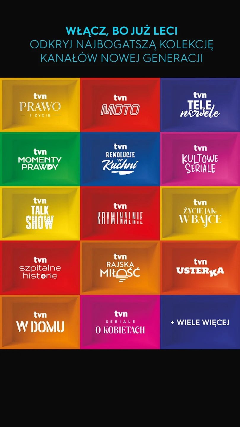 Źródła treści: Głównie z kanałów TVN – takich jak TVN, TVN7, TVN Style, TVN Turbo, TVN24, TVN24 BiS, TTV – a także od zewnętrznych partnerów, m.in. Canal+, HBO, Eleven Sports.