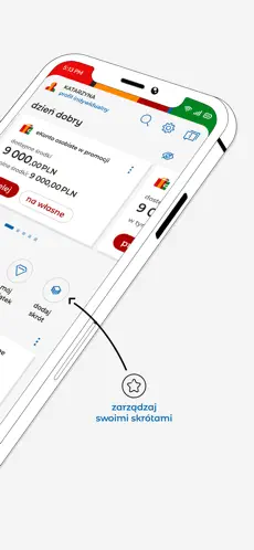 Aplikacja pozwala szybko sprawdzić saldo, historię transakcji, stan kart, lokat i kredytów. Panel główny można dostosować do własnych potrzeb.