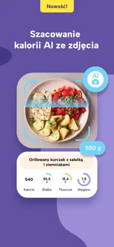 Ponad milion produktów z możliwością skanowania kodów kreskowych – szybkie dodawanie posiłków do dziennika. - Śledzenie postępów i statystyki