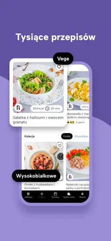 Wybierz gotowy plan diety lub stwórz własny, zgodnie ze swoimi celami (odchudzanie, przybieranie masy, zdrowe odżywianie). - Ogromna baza produktów spożywczych