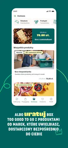 Korzyść dla środowiska: Każda uratowana paczka to mniej zmarnowanej żywności, mniejsze emisje CO₂ i oszczędność wody oraz zasobów naturalnych.