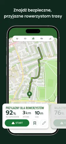 Aplikacja analizuje infrastrukturę rowerową, ruch drogowy i preferencje użytkownika, aby wyznaczać trasy bezpieczne, płynne i optymalne.