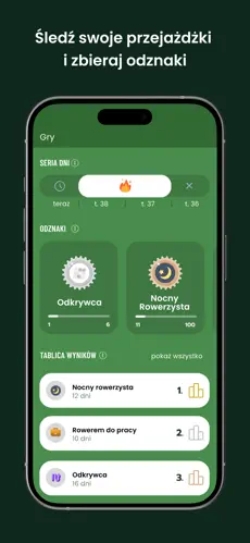 Możesz śledzić dystans, prędkość, czas jazdy, spalone kalorie oraz historię tras.