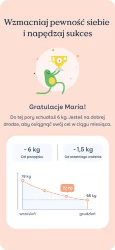 Użytkownicy mogą śledzić zmiany wagi, nawyków żywieniowych oraz osiągane rezultaty.