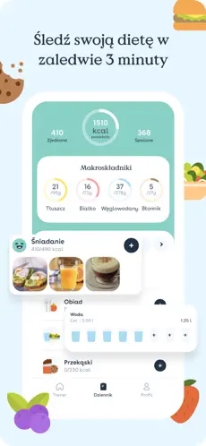 Rozbudowana baza danych pozwala łatwo wyszukiwać produkty i dodawać je do dziennika posiłków.