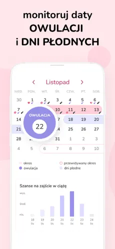 Na podstawie danych aplikacja pomaga przewidywać dni owulacji oraz okresy największej płodności.