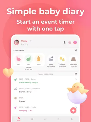 • Dziennik aktywności dziecka – oprócz karmienia możesz zapisywać drzemki, zmiany pieluszek czy przyjmowanie posiłków stałych.
