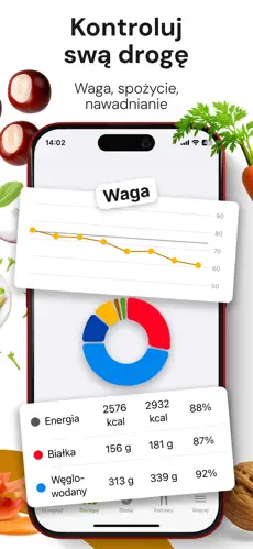 | ✅ Precyzyjna kontrola diety | Śledź każdy posiłek i bilans energetyczny |