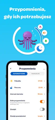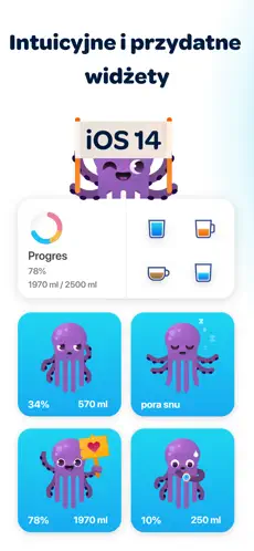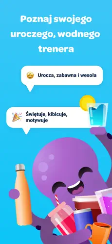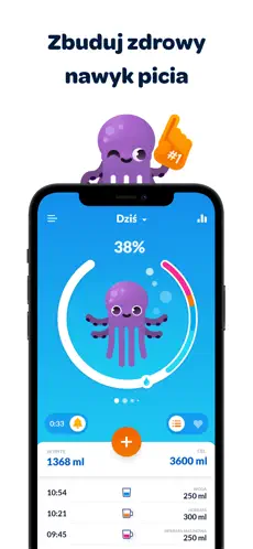 Dzięki spersonalizowanym powiadomieniom aplikacja regularnie przypomina, aby sięgnąć po szklankę wody – bez nachalności i w dogodnych porach dnia.