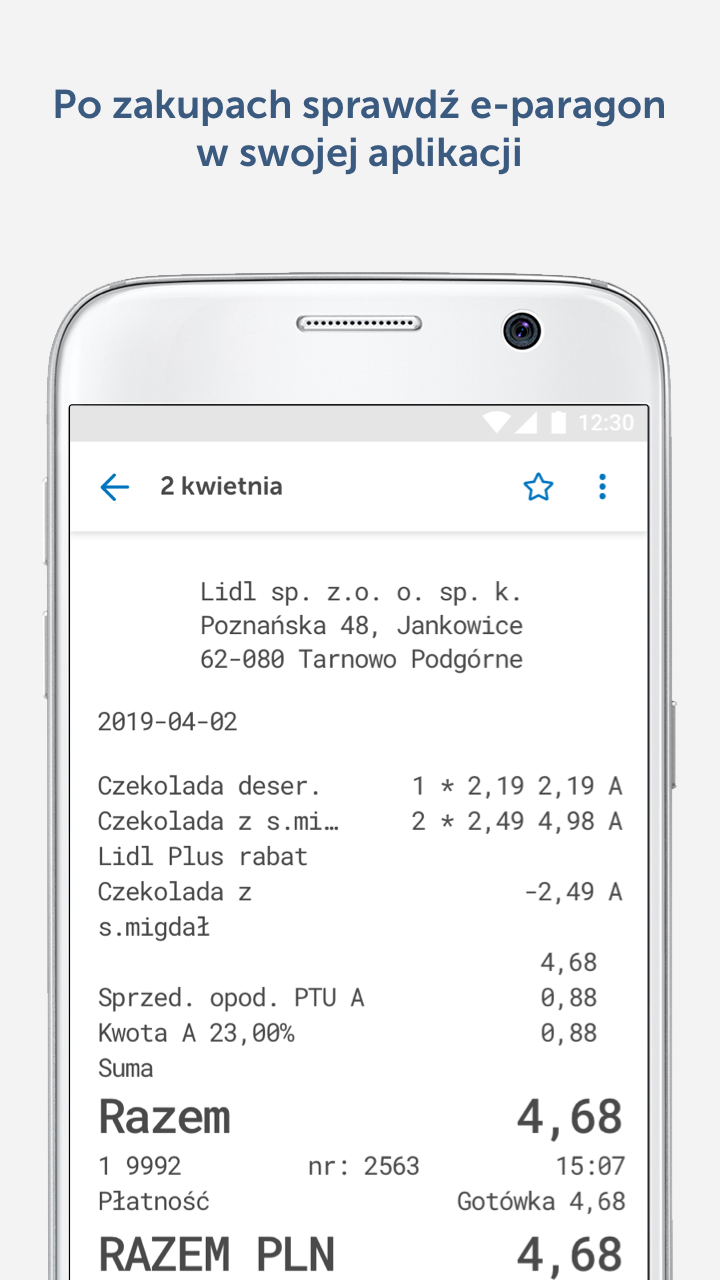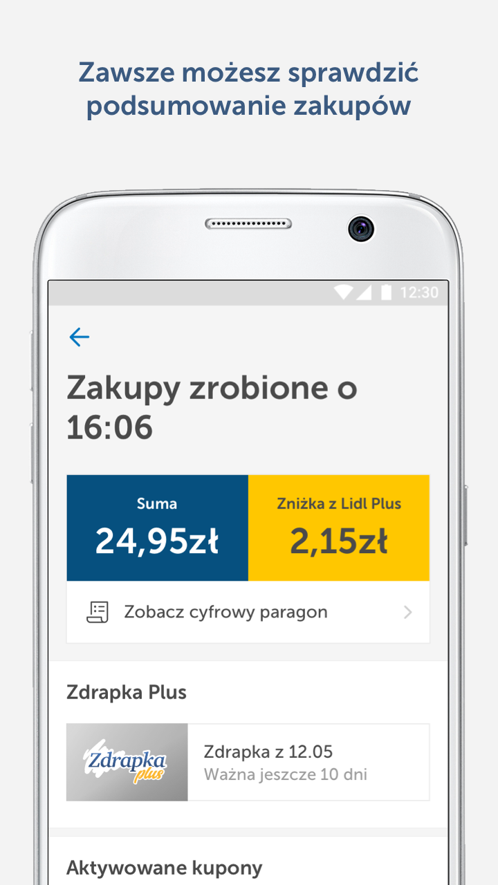 • Historia zakupów – wszystkie paragony są przechowywane cyfrowo, dzięki czemu łatwo sprawdzisz swoje wydatki.