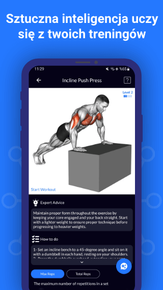 Aplikacja zapisuje historię treningów, pozwalając śledzić rozwój siły, wytrzymałości oraz regularność ćwiczeń. To doskonałe narzędzie do analizy efektów i utrzymania motywacji.