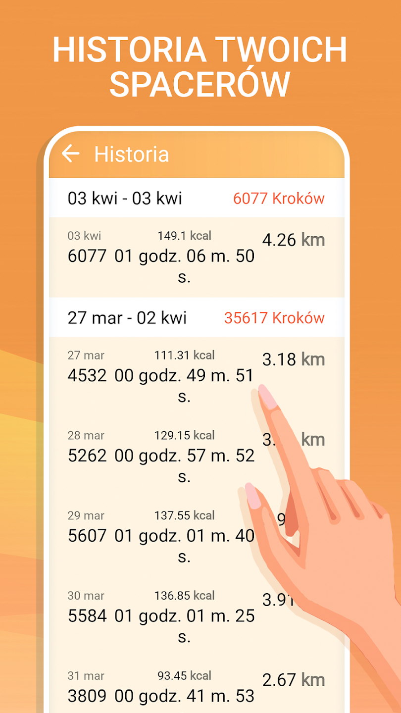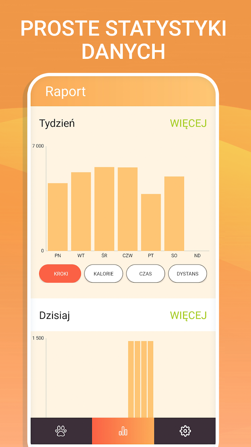 Krokomierz i kroki oferuje rozbudowany panel statystyk, w którym znajdziesz:
