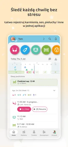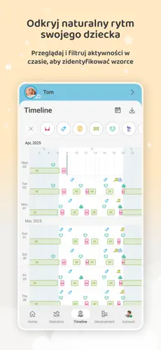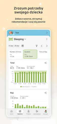 Dzięki przejrzystemu interfejsowi i zaawansowanym statystykom rodzice mogą lepiej zrozumieć potrzeby dziecka i zadbać o jego zdrowie oraz prawidłowy rytm dnia.