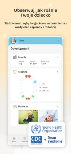 | Kompletna opieka | Monitorowanie karmień, snu, pieluch, wagi i zdrowia |