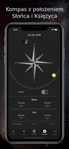 Aplikacja oferuje realistyczne przedstawienie wyglądu Księżyca w danym dniu, co ułatwia jego obserwację.