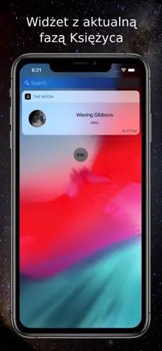 Aplikacja pokazuje bieżącą fazę Księżyca, w tym: