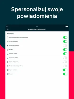 Powiadomienia push: Bądź na bieżąco z golami, kartkami, wynikami setów i końcowymi rezultatami.