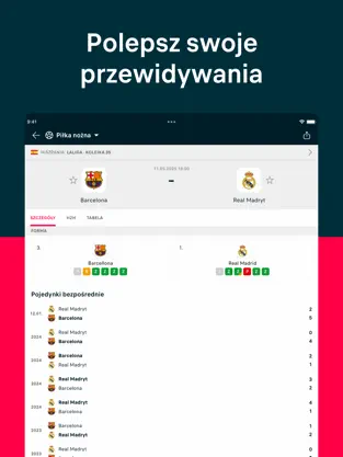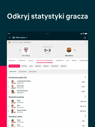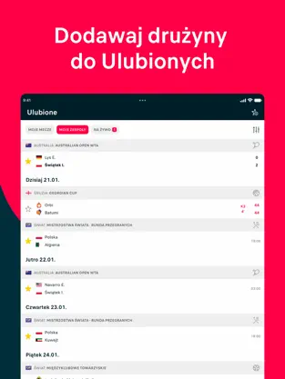Personalizacja: Dodaj ulubione mecze, drużyny i zawodników, aby szybko śledzić tylko interesujące Cię wydarzenia.