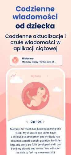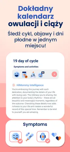HiMommy – Ciąża & Płodność to aplikacja stworzona z myślą o kobietach planujących dziecko oraz przyszłych mamach, które chcą śledzić rozwój swojej ciąży dzień po dniu. Aplikacja dostarcza spersonalizowanych informacji o rozwoju płodu, zmianach w ciele mamy oraz pozwala monitorować zdrowie i objawy.