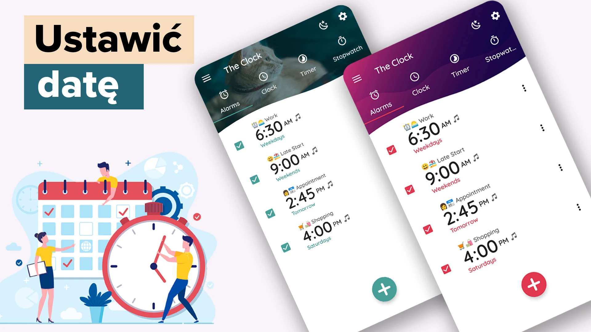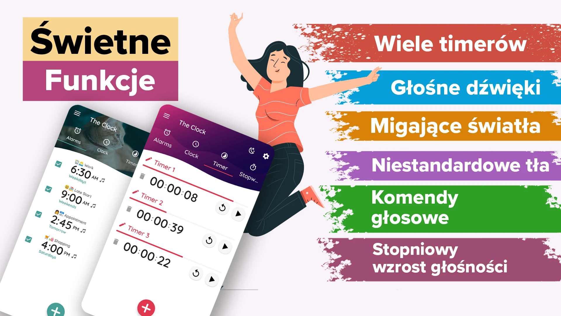 Aplikacja umożliwia ustawianie jednorazowych oraz powtarzalnych alarmów. Dzięki temu możesz zaplanować pobudki na dni robocze, weekendy lub konkretne wydarzenia.