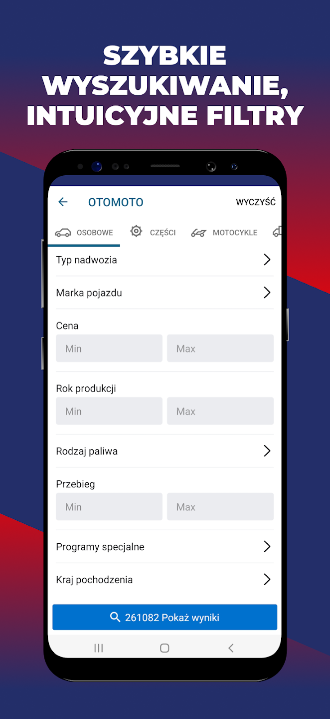 Zaawansowane filtry wyszukiwania – marka, model, rok produkcji, przebieg, cena i wiele innych.