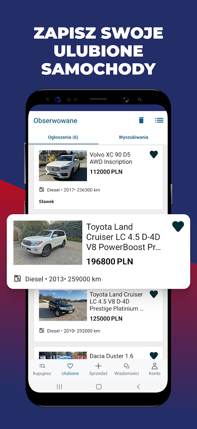 Intuicyjne wyszukiwanie i możliwość zapisania ulubionych ogłoszeń.