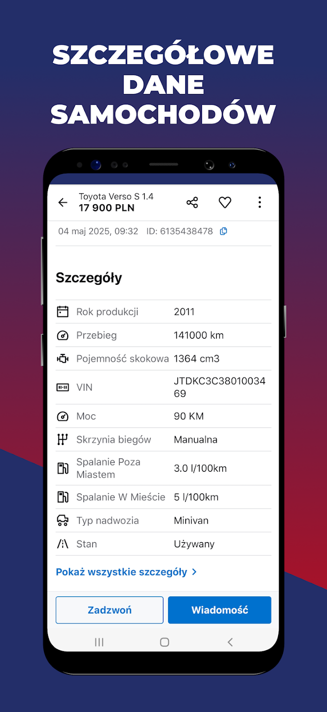 Kontakt bezpośredni ze sprzedającym – wiadomości w aplikacji lub szybki telefon.