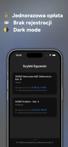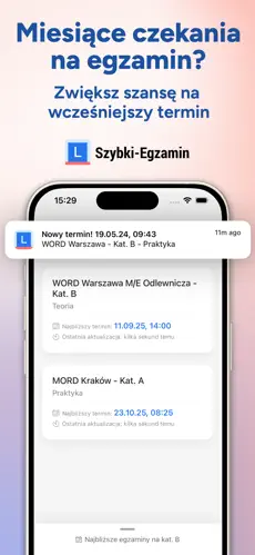 Szybki Egzamin to aplikacja, która monitoruje dostępność wolnych terminów egzaminów i natychmiast powiadamia użytkownika o pojawieniu się nowej daty. Dzięki temu możesz szybko zarezerwować dogodny termin, zanim zrobią to inni.