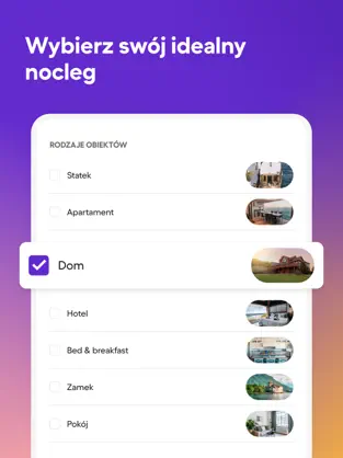 Szeroki wybór ofert – miliony noclegów z całego świata: apartamenty, domki letniskowe, wille, hostele i hotele.