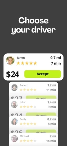 5. Wybierz kierowcę spośród dostępnych ofert.
